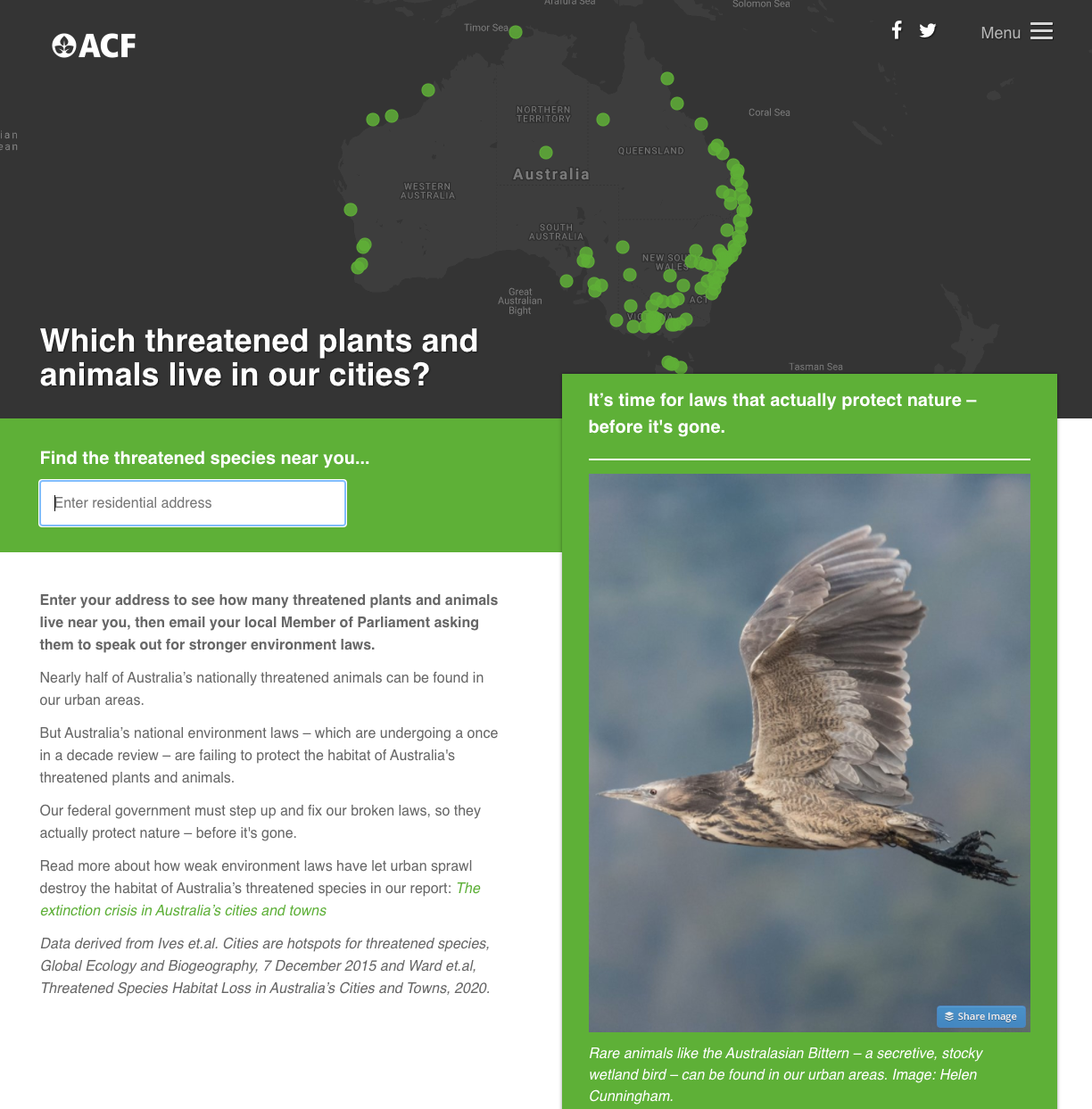 A good example from the ACF in Australia is this geo-location based campaign for threatened species. This campaign also utilises our new Action Scripts which allow content templates to use logic and variables. It's a powerful example of what can be done by pulling a number of our new features together. Conversion rates were extremely high for this novel and engaging action.