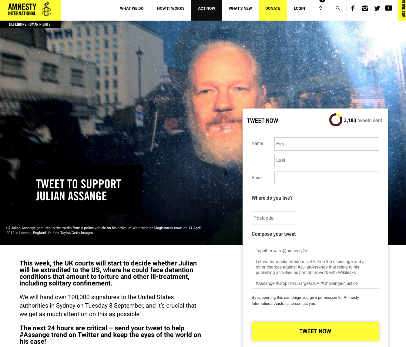 See it in action on Amnesty International's campaign Tweet to support Julian Assange and the #GameOver refugee rights campaign.